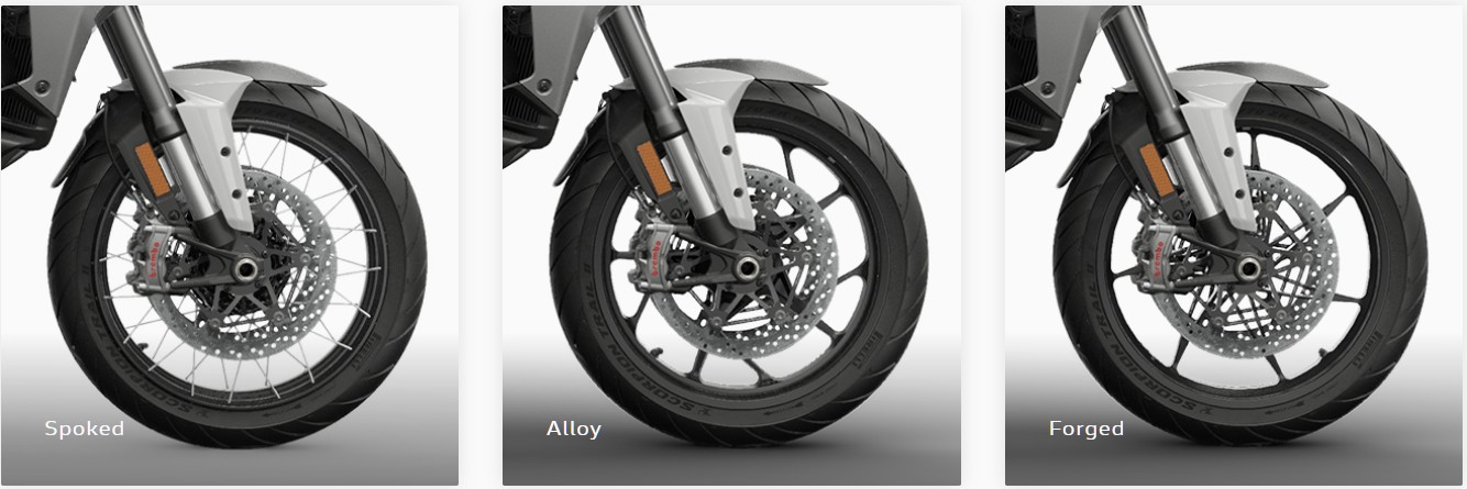 The new Multistrada V4 can be carefully customised for an even more luxurious and tailored experience. You can choose between three colours for the body, plastic or aluminium cases, three different wheel options and five trims. In addition, you have access to a range of accessories, such as forged or spoked wheels, exhaust systems, and ergonomic solutions for the rider and passenger seat and suspension, available as optionals straight out of the factory.