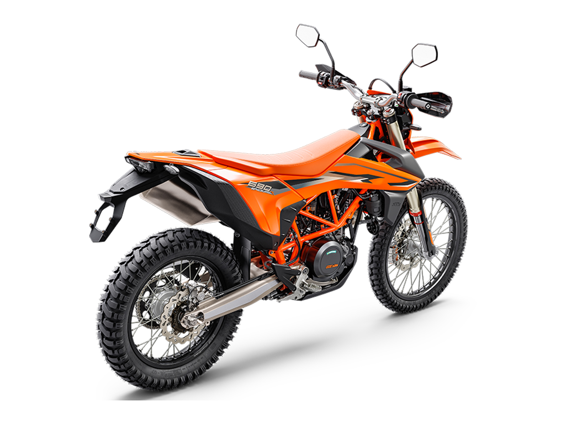 - Exhaust mounted close to the bike, optimised for hard use offroad