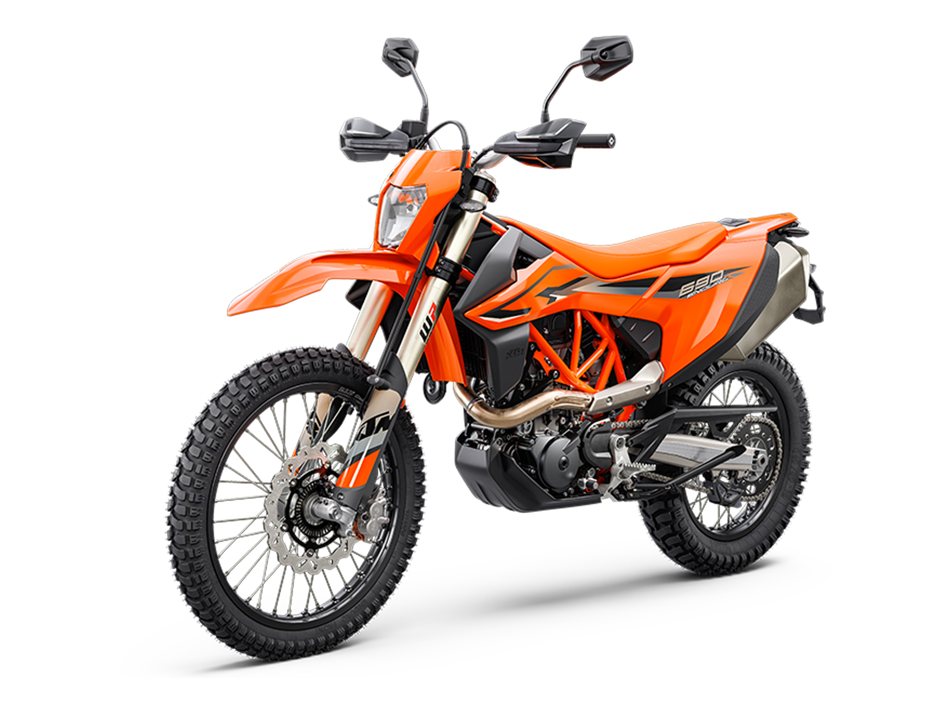 - WP XPLOR fully adjustable rear shock, linkage connection to swingarm