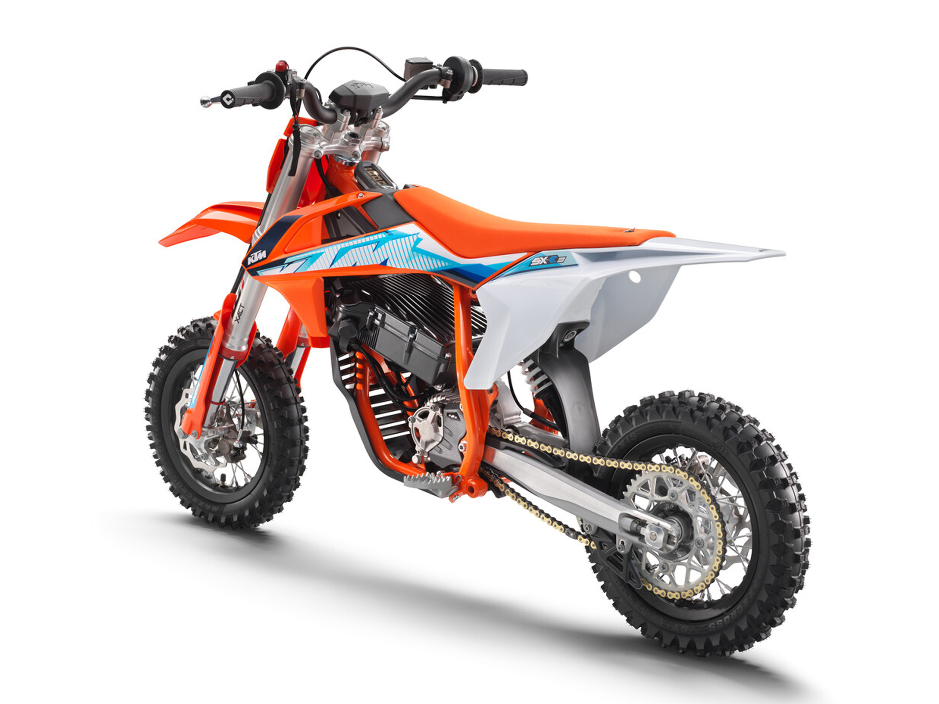 Full electric, replacing the 50 SX two-stroke mini bike. Lower power output, battery capacity, and smaller wheels make it the ideal choice for the youngest of riders finding their feet and still learning the throttle. Includes a battery charger which was previously extra.