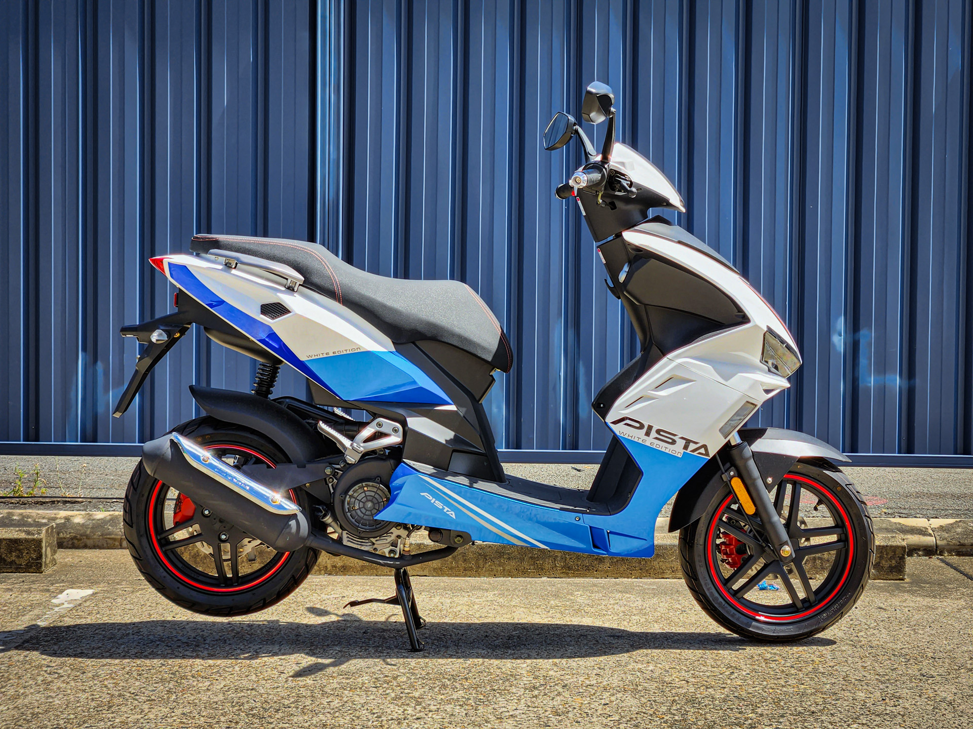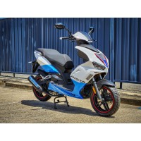 National ride away price. A scooter for RE licensed riders being LAMS approved. For the urban environment with low running costs and ease of use. Four stroke carburetted power keeping buying costs low. Under seat locked storage. LED lighting. Side and centre stands. In Blue White Edition.