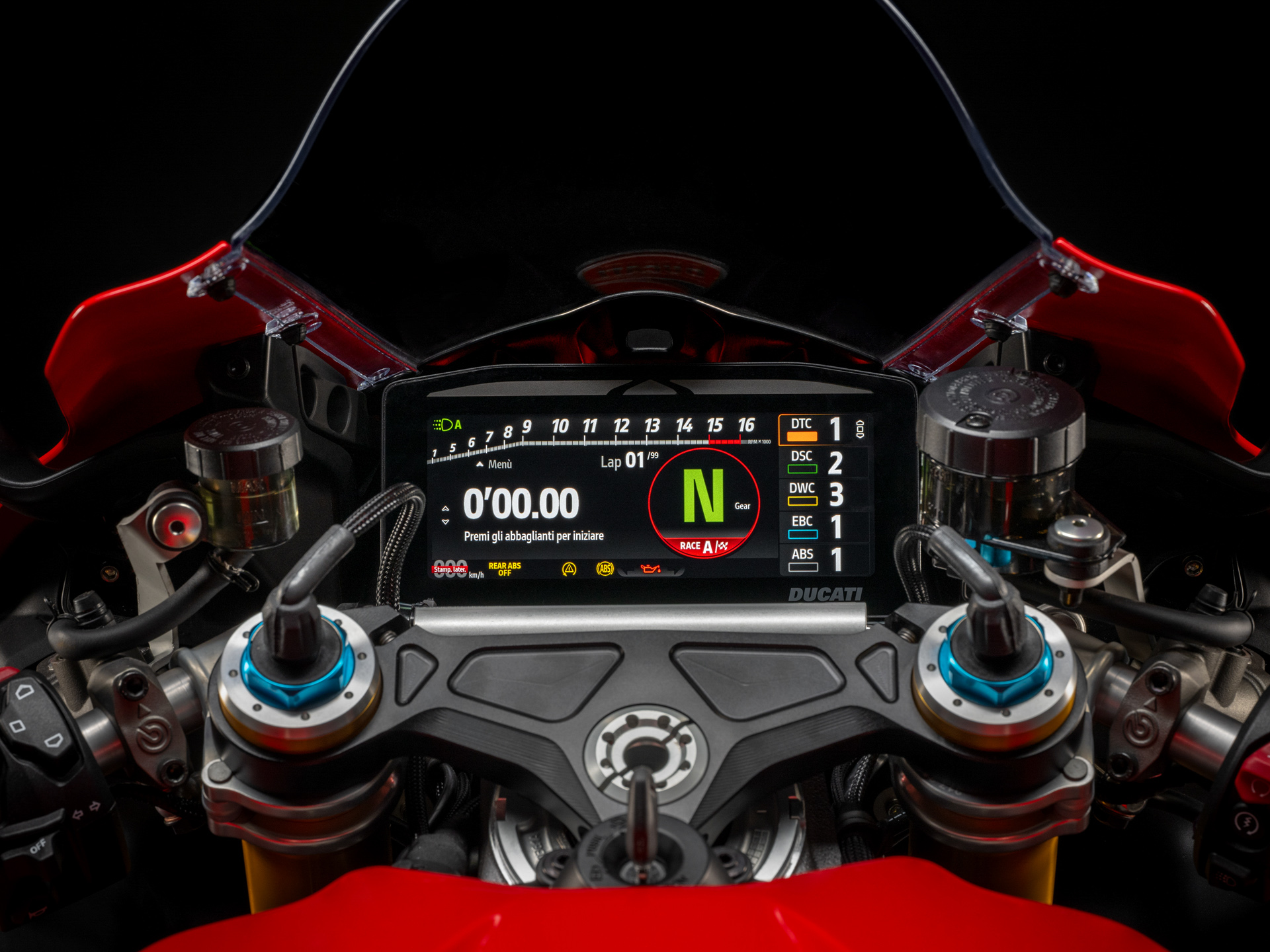 First you'll notice the new 6.9" dashboard screen with a whopping 1,280 x 480 resolution and 8:3 aspect ratio - incredible for a superbike, yet you'll soon understand it has a lot to tell you in a hurry.