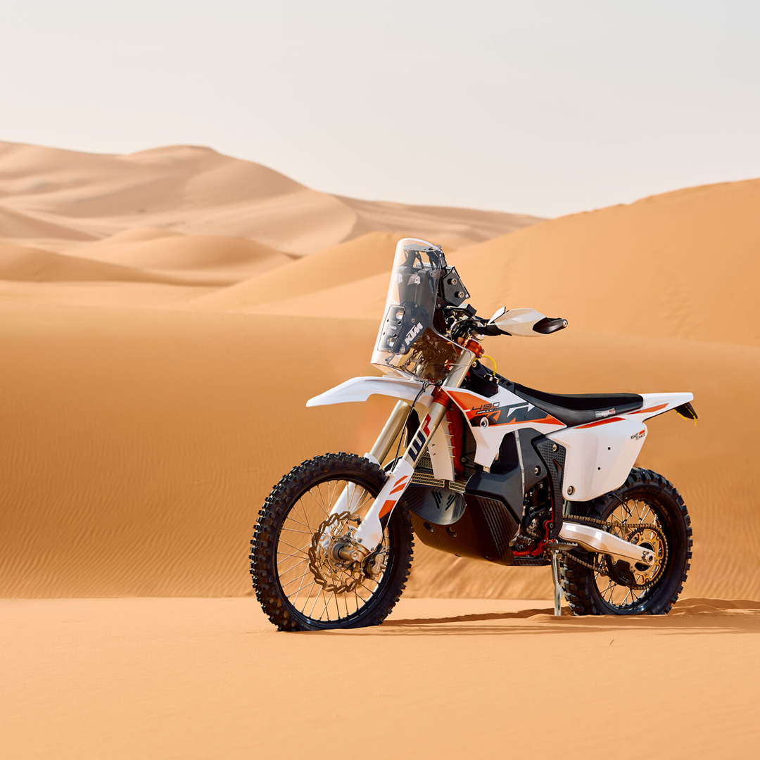 The 2025 KTM 450 RALLY REPLICA is the only customer-facing motorcycle completely produced and assembled in the KTM Motorsports building in Austria, with only 100 units being made available to ambitious rally racers around the globe.