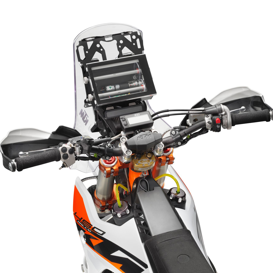 The fairing also protects an all-new, lighter, narrower dashboard, with integrated warning lights and mountings for a digital roadbook system. A new LED headlight system is now incorporated into the front mask, increasing overall lighting output by 33%, which plays a vital role in the early morning stage starts or late-night arrivals.