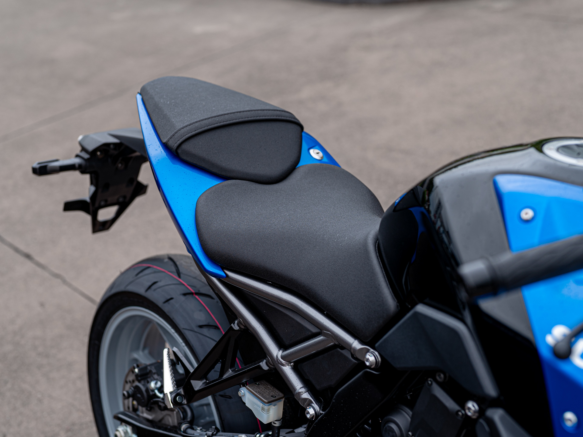 A 14 litre fuel capacity is the balance between expected range and not adding an abundance of weight, like some large tank bikes do, which makes sense on high-performance models due to fuel burn.