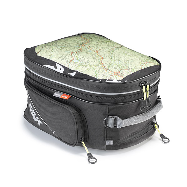 The Givi Expandable Tanklock Bag is a compact polyester bag that can extend up to 26 litres. The unique design allows the bag to be attached to the tank without the need for straps or magnets.