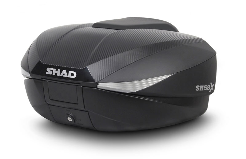 The eXpandible SH58X top case with Carbon finish and with adjustable volume in 3 positions (46-52 and 58 litres), has capacity to hold 2 enduro helmets without the need to put them on their side, plus travel accessories.