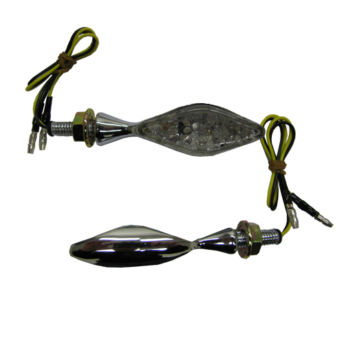Install the XTech Indicator X-4 LED Chrome on your motorcycle to increase turn signal visibility! With 2 watts, the lights are super bright and flash faster than other turn signals on the market. It also boasts clear lens, amber LEDs, short stem wires, chrome hardware, and carbon fibre finish.
