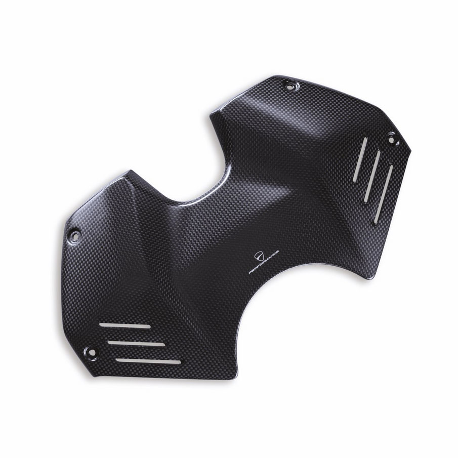 A splendid detail that embellishes the front of the tank in a way that only carbon fibre can. The finishing and lines of this accessory are perfectly integrated into the racing look of this super sports bike.