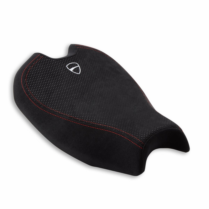 An accessory designed to fully enjoy every turn will riding the Streetfighter V2. The seat height, increased by 20 mm compared to the standard version, combined with the more compact foam, thicker padding and technical fabric cover, offers maximum support and minimises rider fatigue, thereby significantly improving riding comfort.