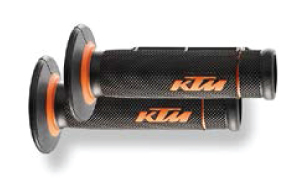 Combining durability and comfort, the KTM Grip Set with Dual Compound features a harder orange material on the inside and at the grip ends for a long service life. The softer black material on the outside, where the hand lies on the grip, for reduced hand fatigue. Fits all 22mm to 28mm handlebars.