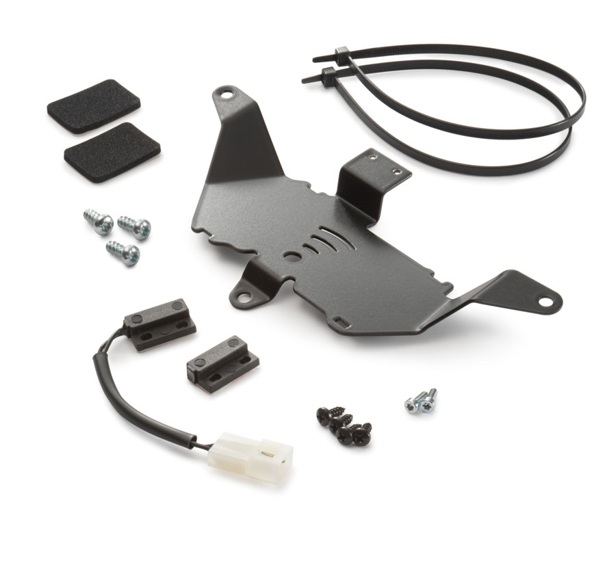 The KTM Alarm System Mounting Kit is required for installing alarm system 60112035000 to your 790 or 890 Duke. The kit contains all the necessary parts for fixing it securely to the vehicle.