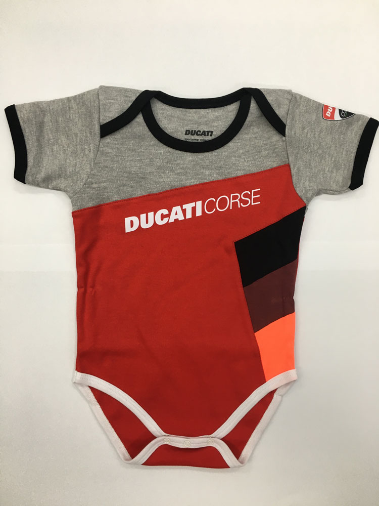 Ducati DC Sport Baby Bodies features two suits that are made from anallergic and breathable materials. They have Non-toxic prints and Nickel-free buttons. One is made from 95% cotton and 5% polyester and the other is made from 50% cotton and 50% polyester.