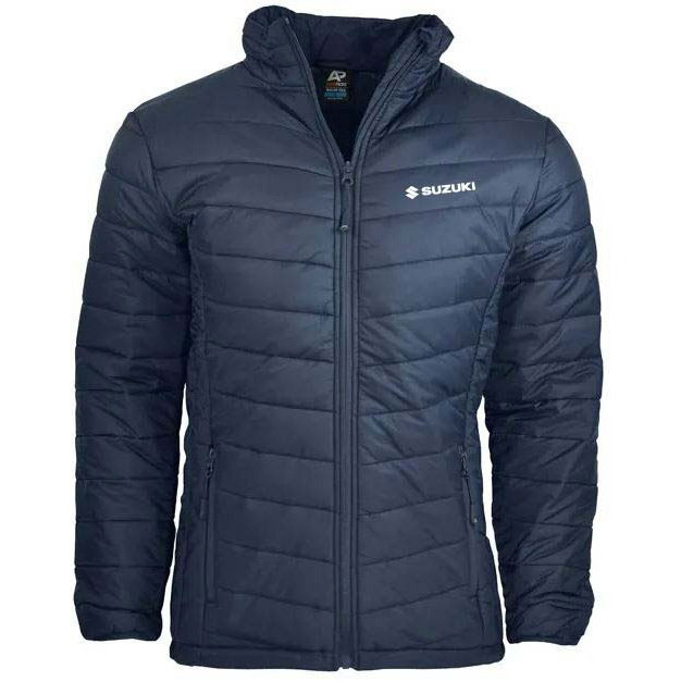 Puffer jacket with 380T, 100% nylon Inner and 100% polyester light weight padding. Features 2 zip pockets, elasticated cuffs, stand up collar and self fabric chin guard. Angled embroidered logo to be in line with jacket stitching.